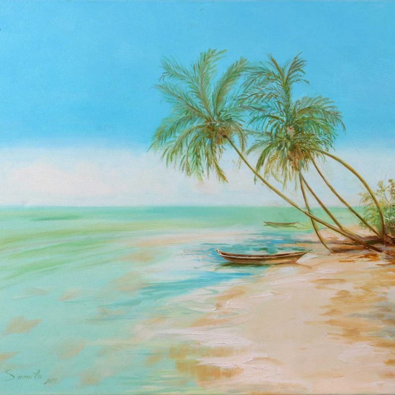 Nas mãos de Samila, o azul não é apenas uma cor, mas uma expressão vívida da conexão entre a arte e a natureza, imortalizada em cada pincelada.